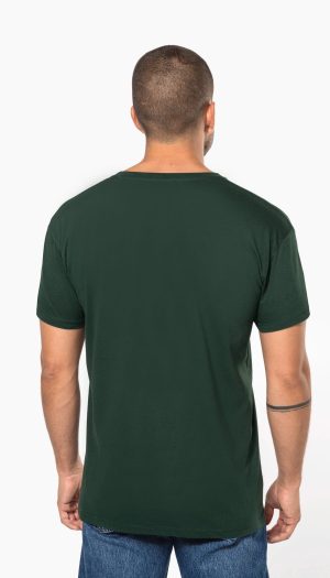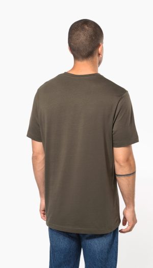 Coloris unis : 100% coton. Coloris Ash Heather : 98% coton / 2% viscose. Coloris Oxford Grey : 90% coton / 10% viscose. Tous les coloris sont fabriqués à partir de coton en conversion biologique. Coton peigné. Encolure en V en bord-côte avec élasthanne. Bande de propreté ton sur ton à l’encolure. Tubulaire. Finition double…
